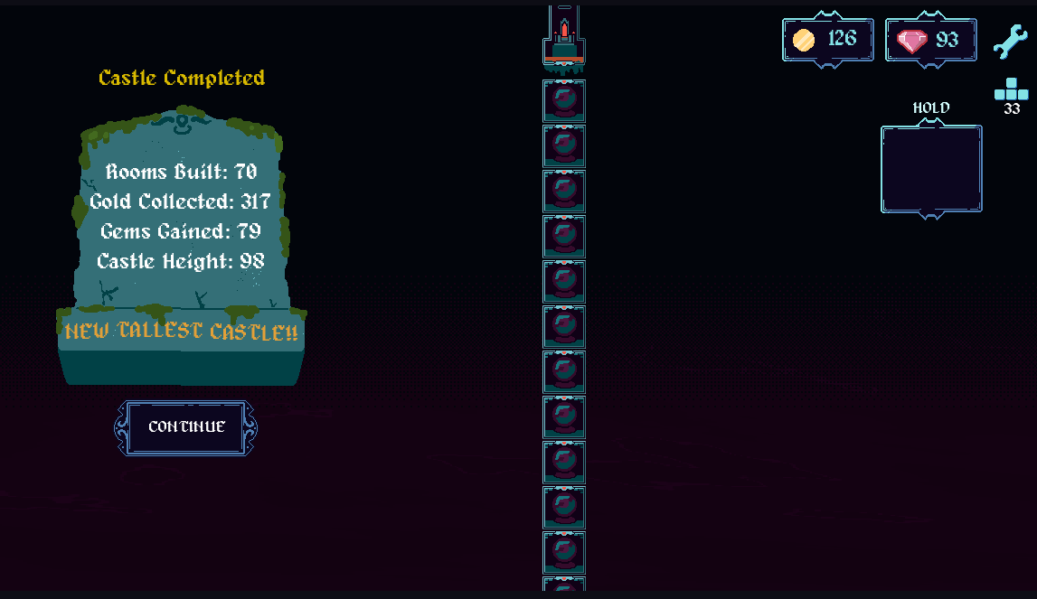 Build up the castle by placing rooms strategically to get bonuses. Spend Gems between centuries to get new rooms and build your home ever higher. Will you be able to build a Castle tall enough to escape this loop of Rebirth and Defeat.