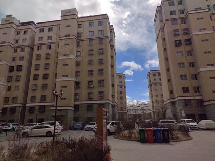 小区入口就有个很大的花园,绿化周边有儿童滑梯等娱乐设施