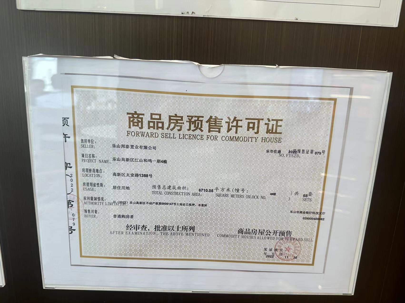 | 乐市住建2022房预售证第079号 | 2022-11-30 | 13# |