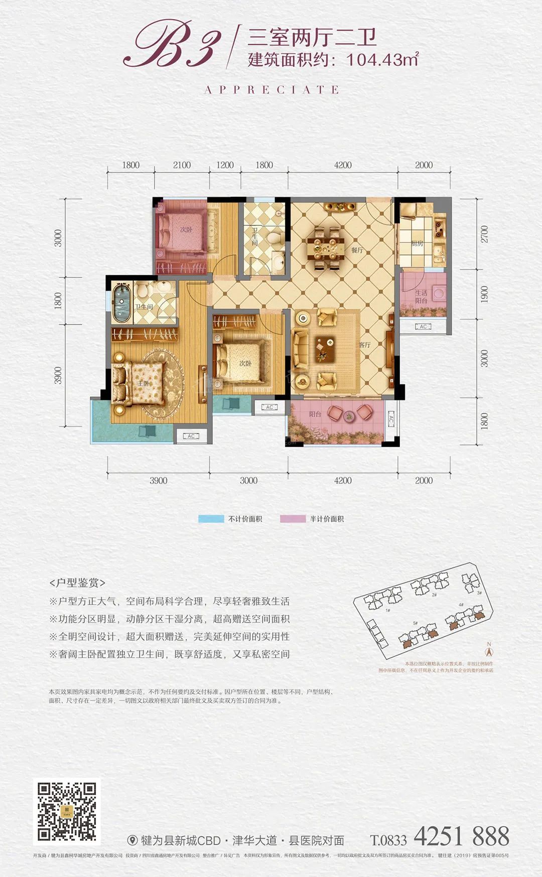 鑫通雅苑带装修交付,参考均价约4800元/㎡,共459户户。项目商业配套完善,能够满足日常所需。 鑫通雅苑项目为住宅、普通住宅,30%高绿化率,居住舒适, 2019.01.26已开盘。该项目由四川鑫通房地产开发有限公司打造、质量有保障、购买也比较放心。 鑫通雅苑项目售楼地址:犍为县新县医院对面(接待时间 9 - 21),在售户型有:建面104.43㎡(3室2厅2卫)、建面104.86㎡(3室2厅2卫)、建面114.94㎡(3室2厅2卫)、建面98.64㎡(3室2厅1卫)、建面97.76㎡(3室2厅1卫)等。334。项目物业费: 暂无资料;物业公司:待定。“以上信息仅供参考,详情具体可致电售楼处咨询”。