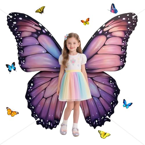Nicime Butterfly Backdrop with Rope and Glue Dot, Cute Pink Wings Party Decoration Background, Happy Birthday Supplies Outdoor Indoor Photo Wall Banner