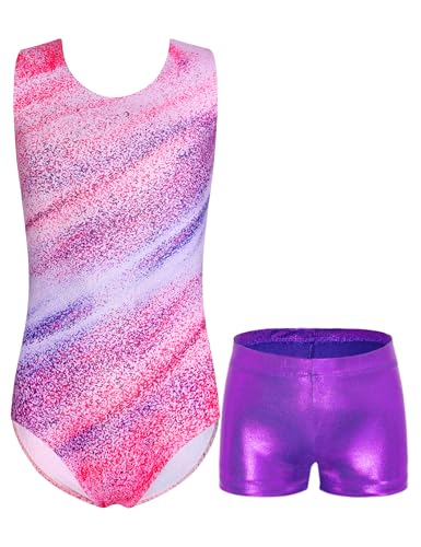 Domusgo Gymnastics Leotards for Girls 7-8 Years Old Glitter Colorful Stripes Sleeveless Set with Matching Shorts
