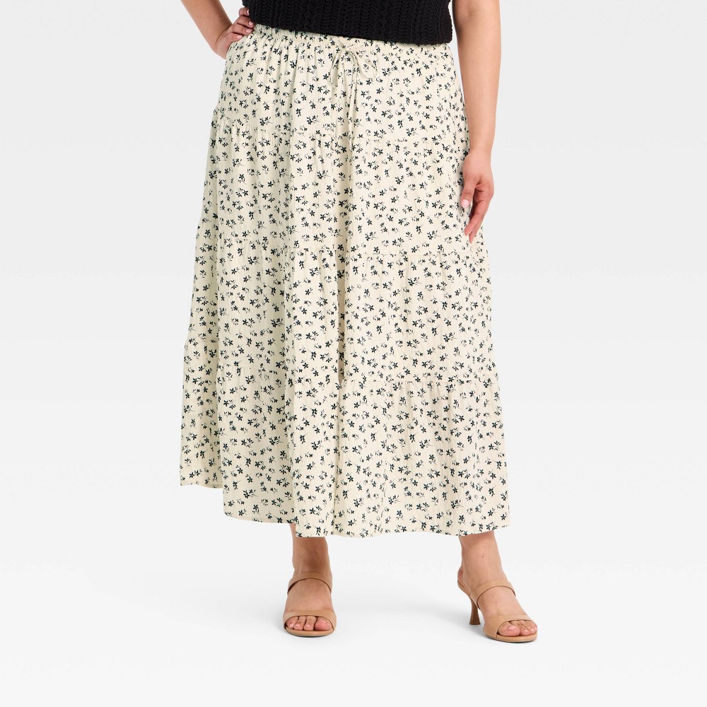 Women's Tiered Skirt - A New Day™ Cream/Black Floral XXL