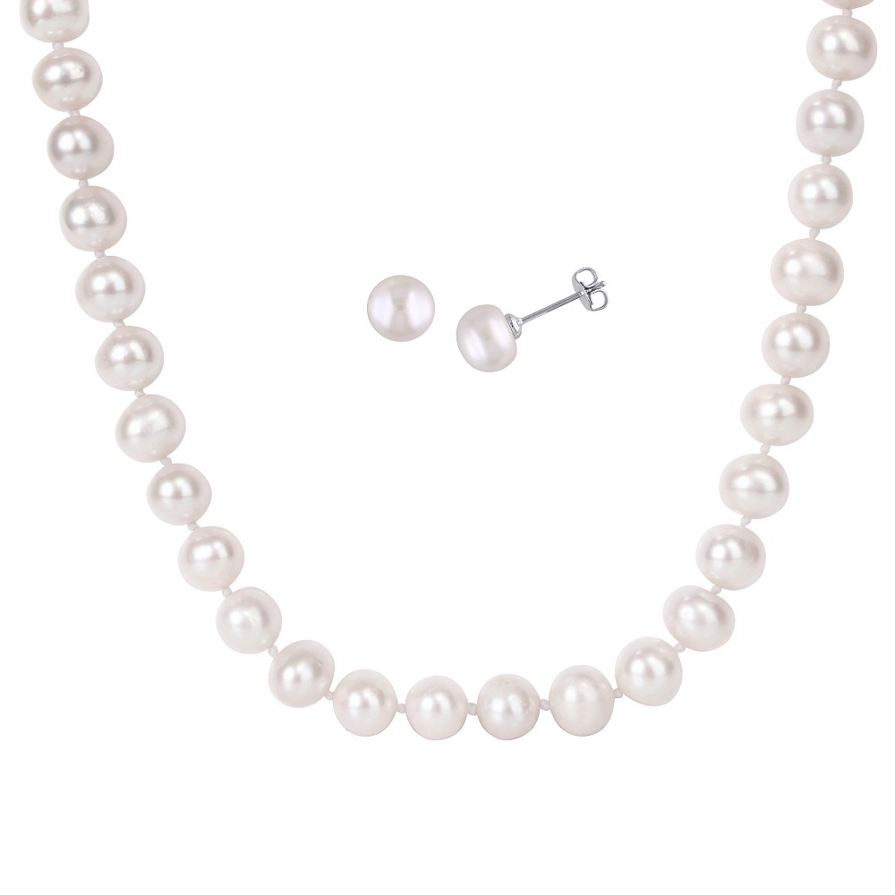 9-10mm Freshwater Cultured Pearl Necklace and 8-9mm Freshwater Cultured Pearl Earring Set