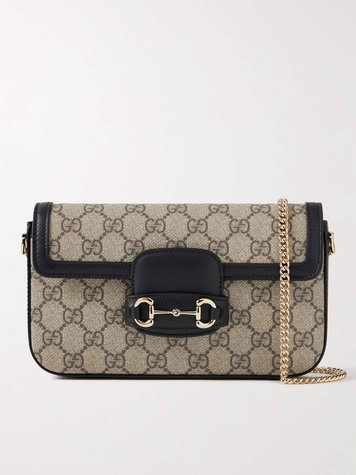 Gucci - Horsebit 1955 Embellished Leather-trimmed Coated-canvas Shoulder Bag - Brown