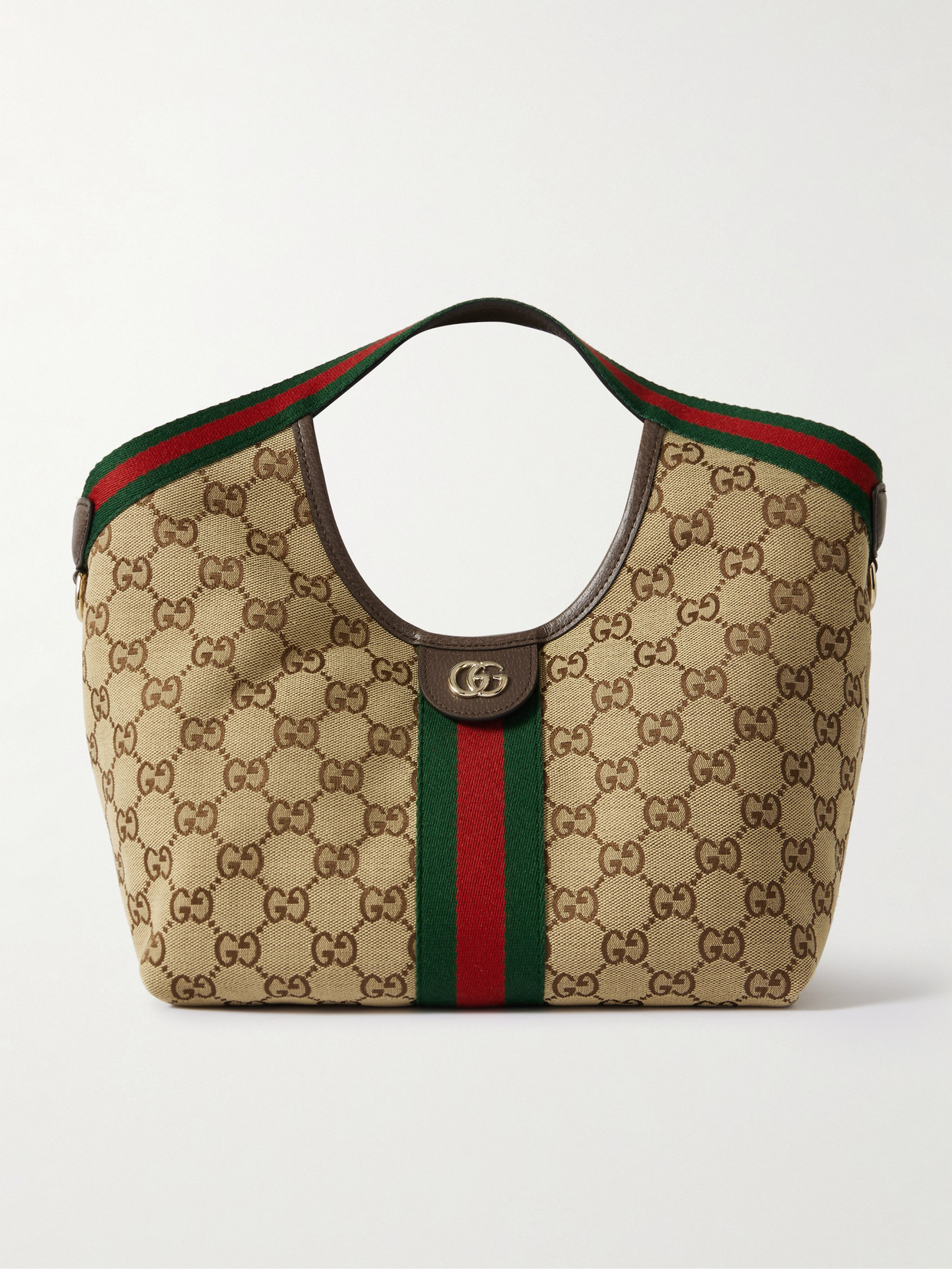 Gucci - Giglio Small Leather-trimmed Canvas-jacquard Tote - Neutrals