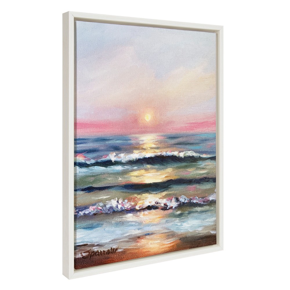 18" x 24" Sylvie Atlantic Sunset Framed Canvas by Mary Sparrow White - Kate & Laurel All Things Decor: Contemporary Ocean Art
