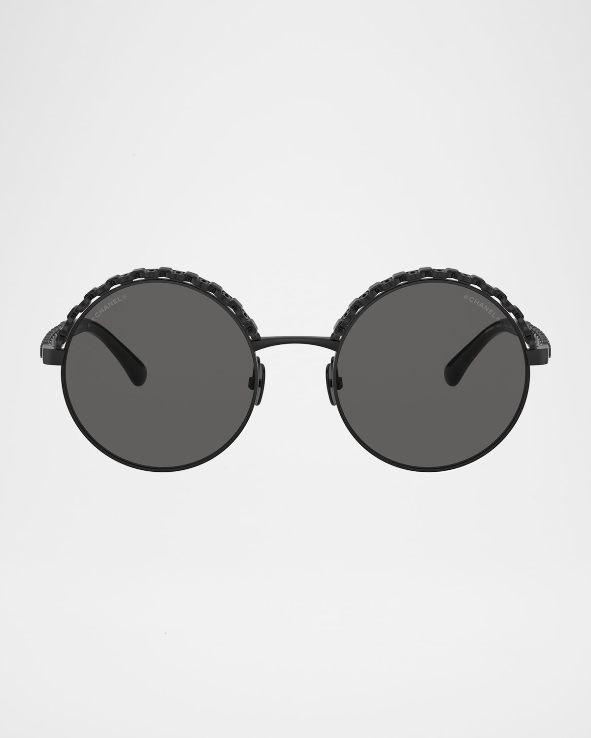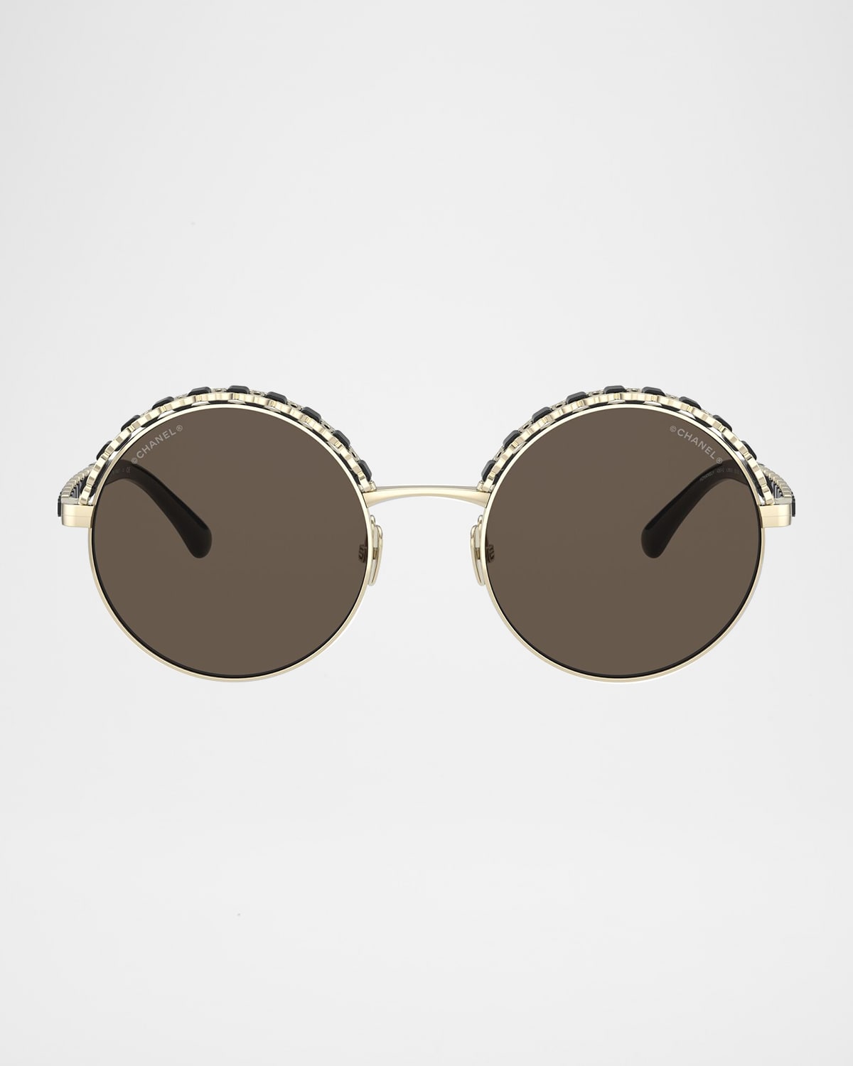 Round Metal Sunglasses with Woven Leather Detail