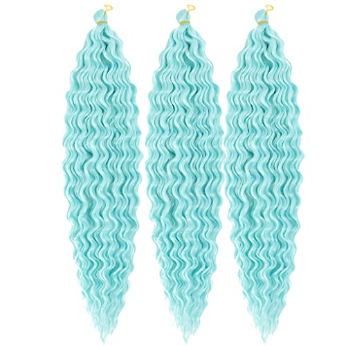 24inch Ocean Wave Braiding Hair Extensions 3packs Long Deep Curly Wave Braid Hair Synthetic Twist Ripple Crochet Curly Braids Hair for Women 100g/pack(24",Green)