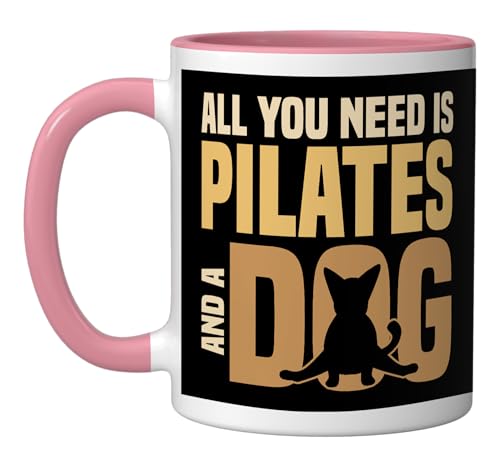 All You Need Is Pilates And A Dog Pilates Lover Ceramic Mug, Pink/White