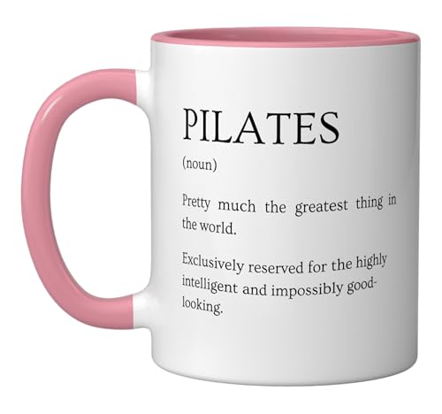 Pilates Definition - Funny Sarcastic Pilates Explanation Ceramic Mug, Pink/White