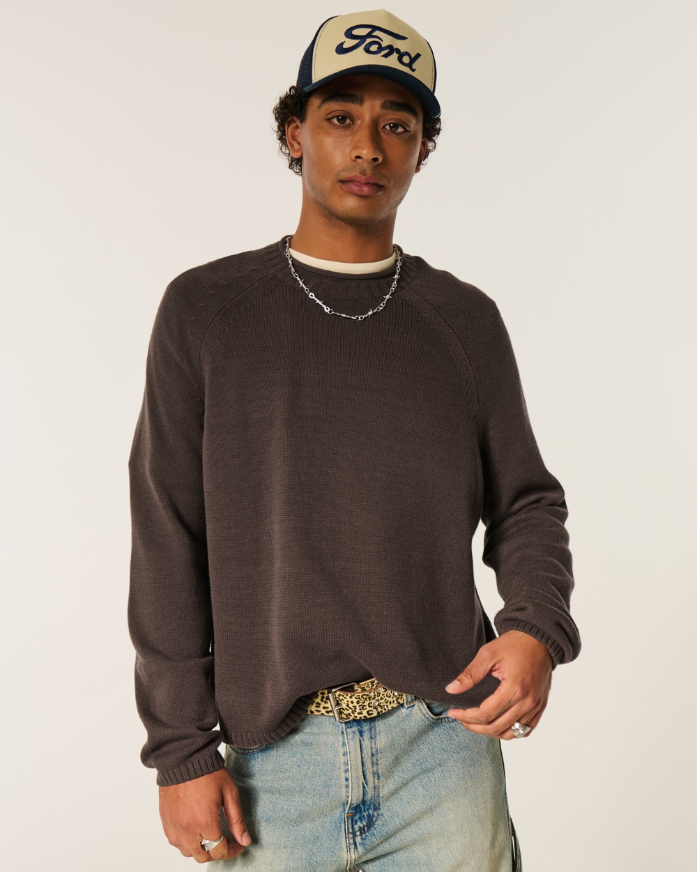 Boxy Roll-Neck Crew Sweater