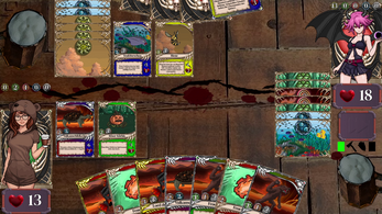 The trading card game with the 8 orks! Choose one of six starter decks and play against many crazy characters, get booster packs and upgrade your deck! You're playing the protagonist Chai, who was invited to a halloween party. Sadly, she's the only one without a costume. No big deal, she can always play Orkan with the people!