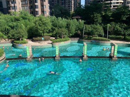 小区配有篮球场幼儿游玩设施露天游泳池……