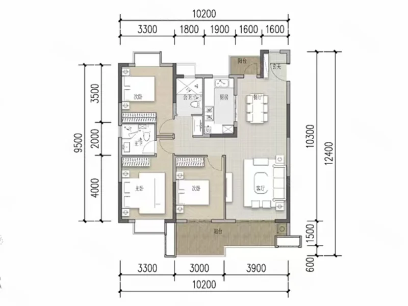 3 室 2 厅 2 卫