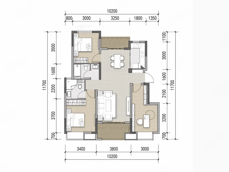 3 室 2 厅 2 卫