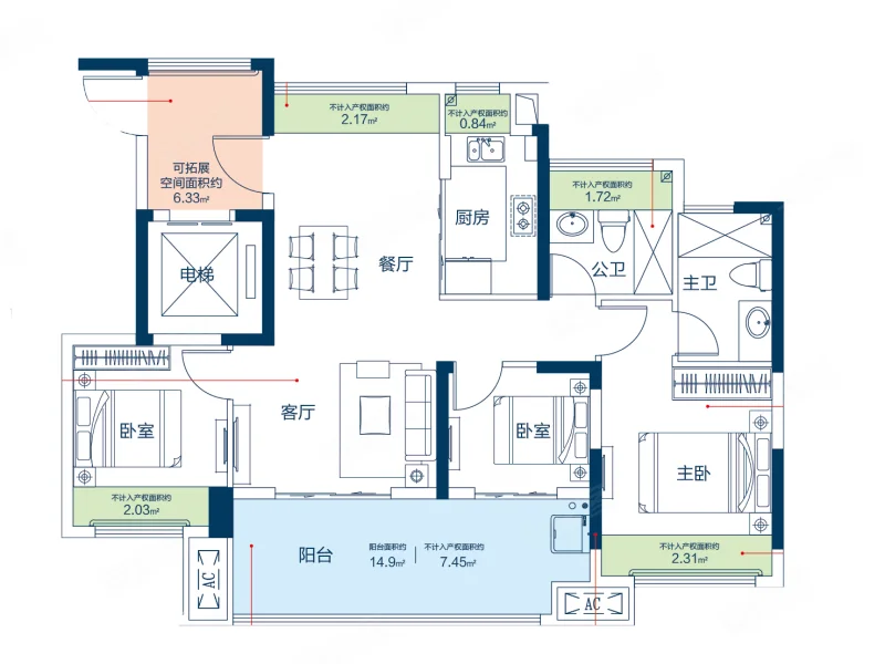 3 室 3 厅 2 卫