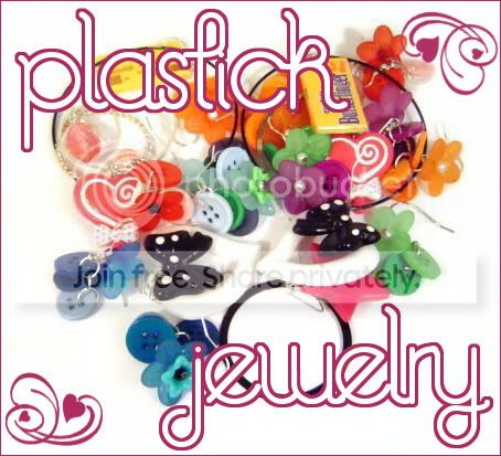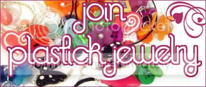 1. Don't post things unrelated to plastic jewelry. 2. It doesn't matter if your plastic jewelry is DIY or not, but DIY is better. ;) 3. Advertisements are OK! Just make sure they're primarily about plastic jewelry. 4. Feel free to post pics of your jewelry, your DIY jewelry, your friends jewelry, you looking cute in your jewelry, etc! Everything goes. 5. Please try to promote using the following banner by placing it in your journal, profile, or on a community you think might be related: