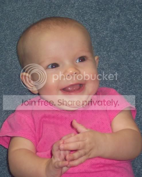 I haven't posted a picture of my daughter yet so I thought I would post two of her pictures. These were taken nearly a month ago. She will be six months old on August 13th.  | | Monday, August 2nd, 2004 | 10:30 am [brooksmom]