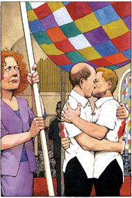 The first is a lesbian couple; active lay people in one of the churches I was privileged to serve as bishop. These women, who have been a couple as long as I have known them, have children who are reaching toward the teenage years. Their parish priest is one of our finest; an open, sensitive and courageous man, whose church signboard states overtly, that in this house of worship all gay, lesbian, and transgender people are welcome. That welcome is real. The homosexual members of that church are not merely tolerated; their presence is enthusiastically celebrated. Indeed this wonderfully diverse and open congregation charters buses on Gay Pride day so that its straight members can join its gay members marching together in the Pride parade down 5th Avenue in New York City.