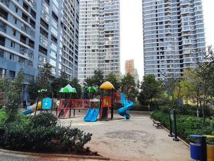 小区中心位置为广场花园,配有健身器材,娱乐场所、儿童乐园,植被覆盖率高