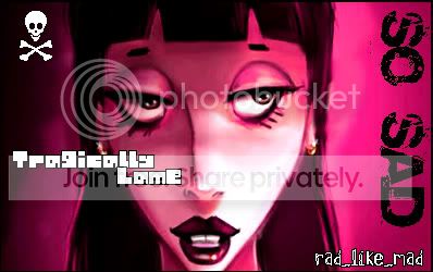 Holy crap! It's yet another rating community. In the past you might've run into some rating communities where in the info somewhere they were like "blah blah blah we're so scene, blah blah blah we're going to ban you blah blah blah." But don't worry. We're not going to say, "Oh you don't like the music I like, YOU SUCK!" or anything equally stupid/immature. We promise, we're actaully quite nice. Trust us. And just for the record, I personally cannot stand the question "Why should we let you into our community." That's why you don't see it on the application.