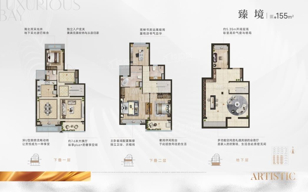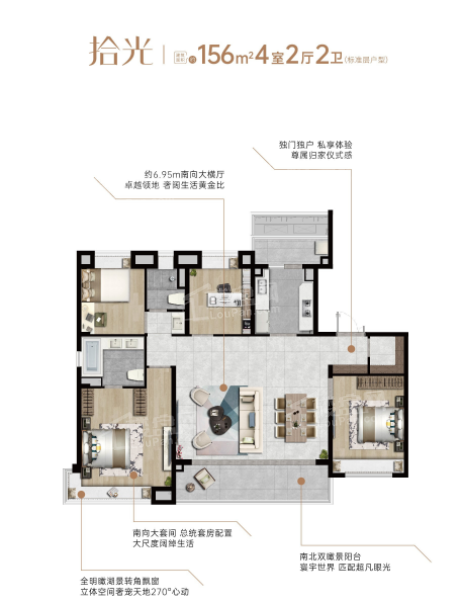 复地星愉湾共有7个户型,当前有4个户型在售,155㎡的4室、156㎡的4室、139㎡的4室、138㎡的3室、195㎡的4室、99㎡的3室、98㎡的3室。其中155㎡的4室的臻境户型特别受欢迎。该户型户型方正,全明格局,动静分区深受购房者的喜欢。具体户型情况如下