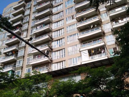 小区只有一栋,分两个单元,没有绿化,人车不分流