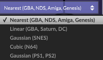 - Selectable Interpolation types used on consoles like GBA, NDS, SNES, PS1, N64, PS2, Dreamcast, Saturn, Genesis/Mega Drive and more!