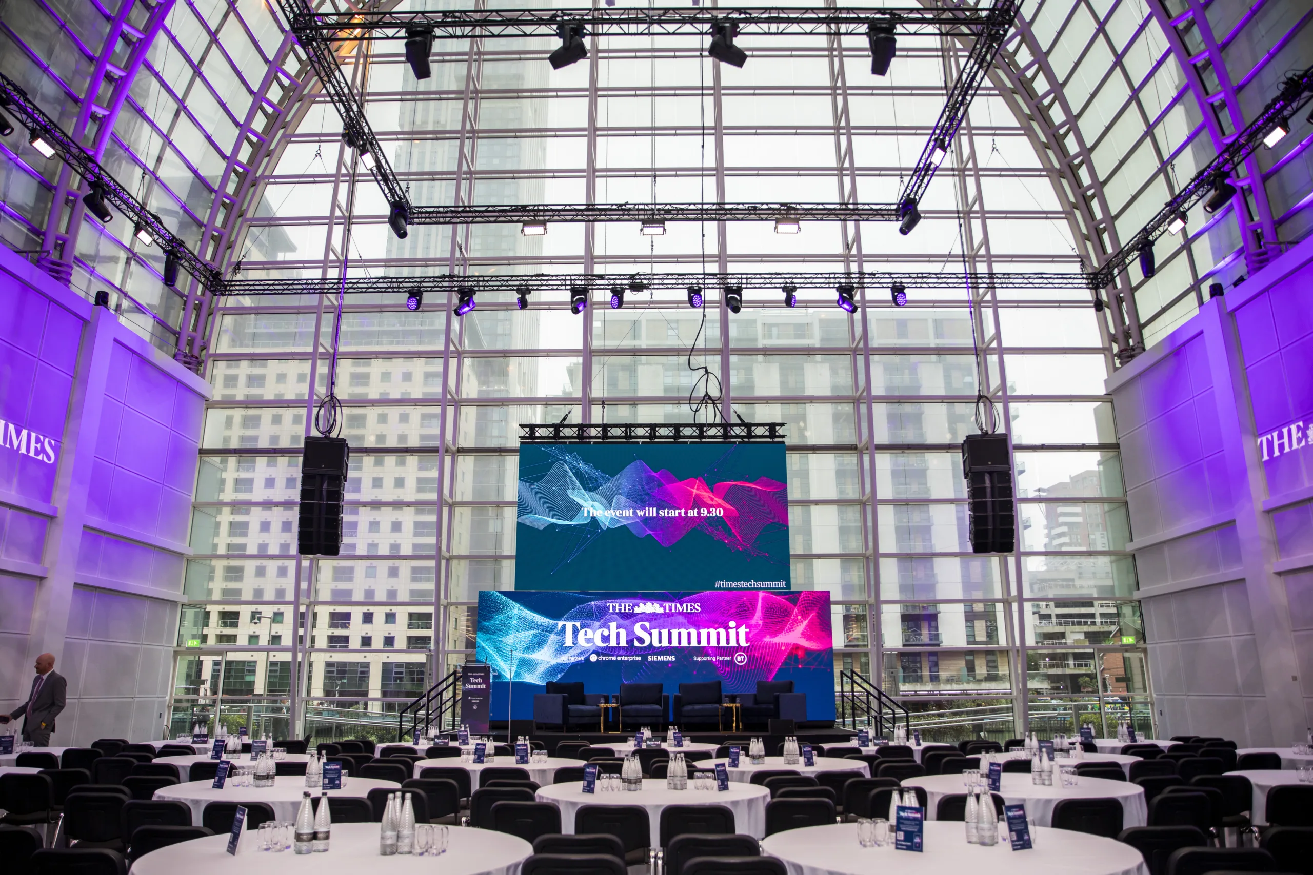 A soaring glass dome of 27 metres with a mezzanine and waterside terrace, this versatile venue right on Canary Wharf welcomes floods of natural light into a space that can flex to accommodate up to 750 guests. Designed by renowned architect CÃĐsar Pelli, The Pelligon can also be personalised, from customisable lighting that lets you to set the mood according to occasion to branding opportunities that include wall wrap and banners.