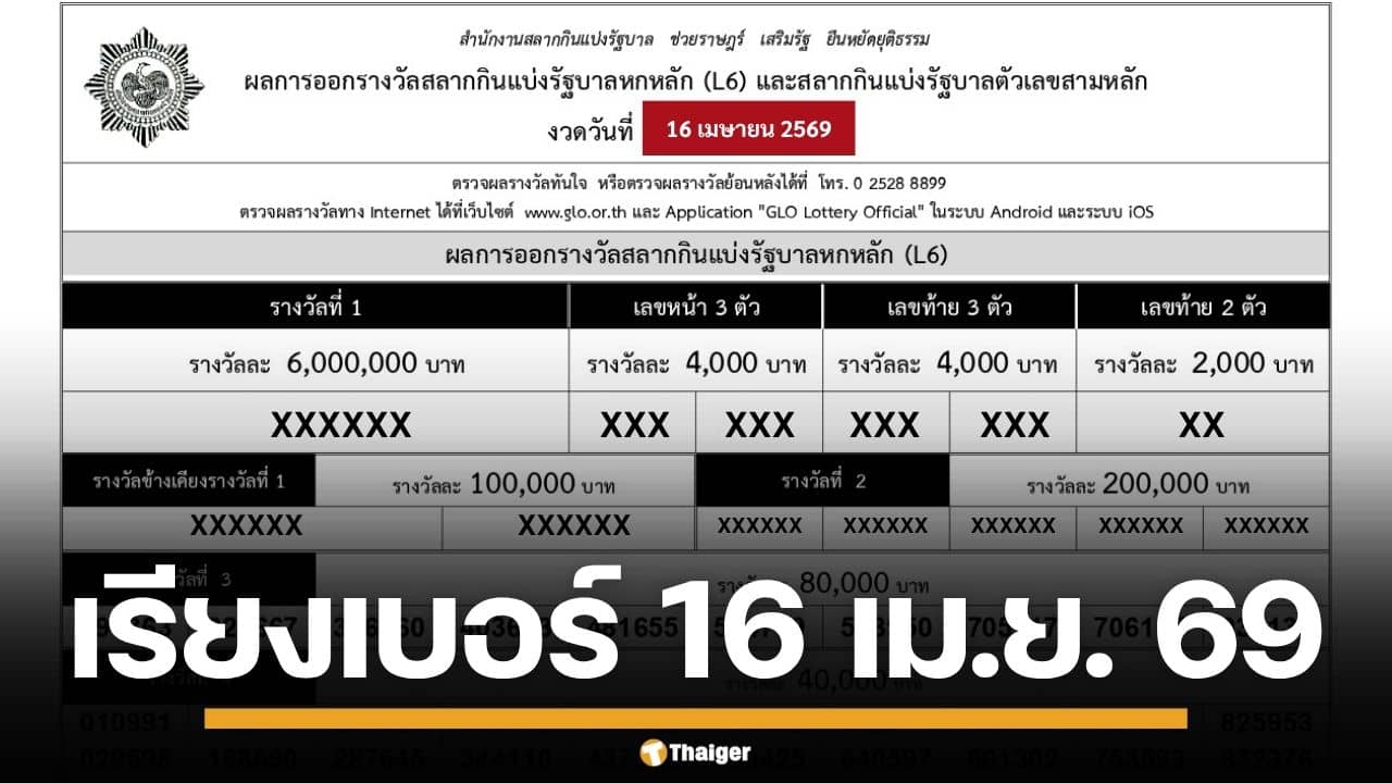 ผลสลากกินแบ่งรัฐบาล 01 เมษายน 2569