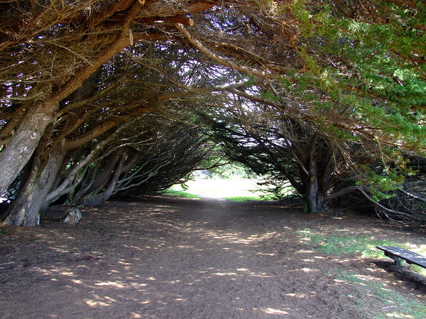Archway of overgrown cypress at the Mendocino Botanical Gardens. May 2008