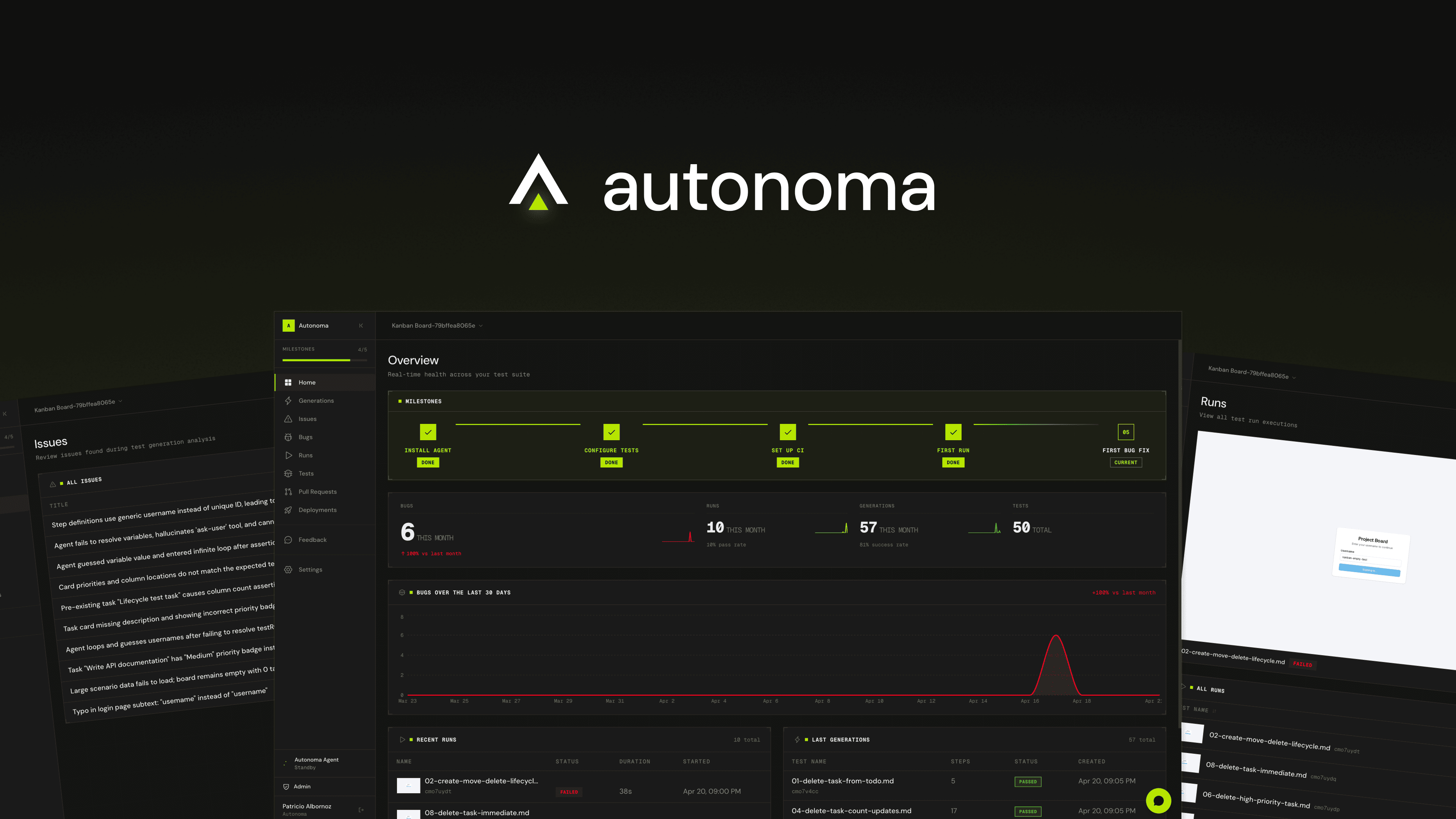 Autonoma is an open-source testing platform where AI agents navigate your app end-to-end and catch regressions on every PR. No test code required.