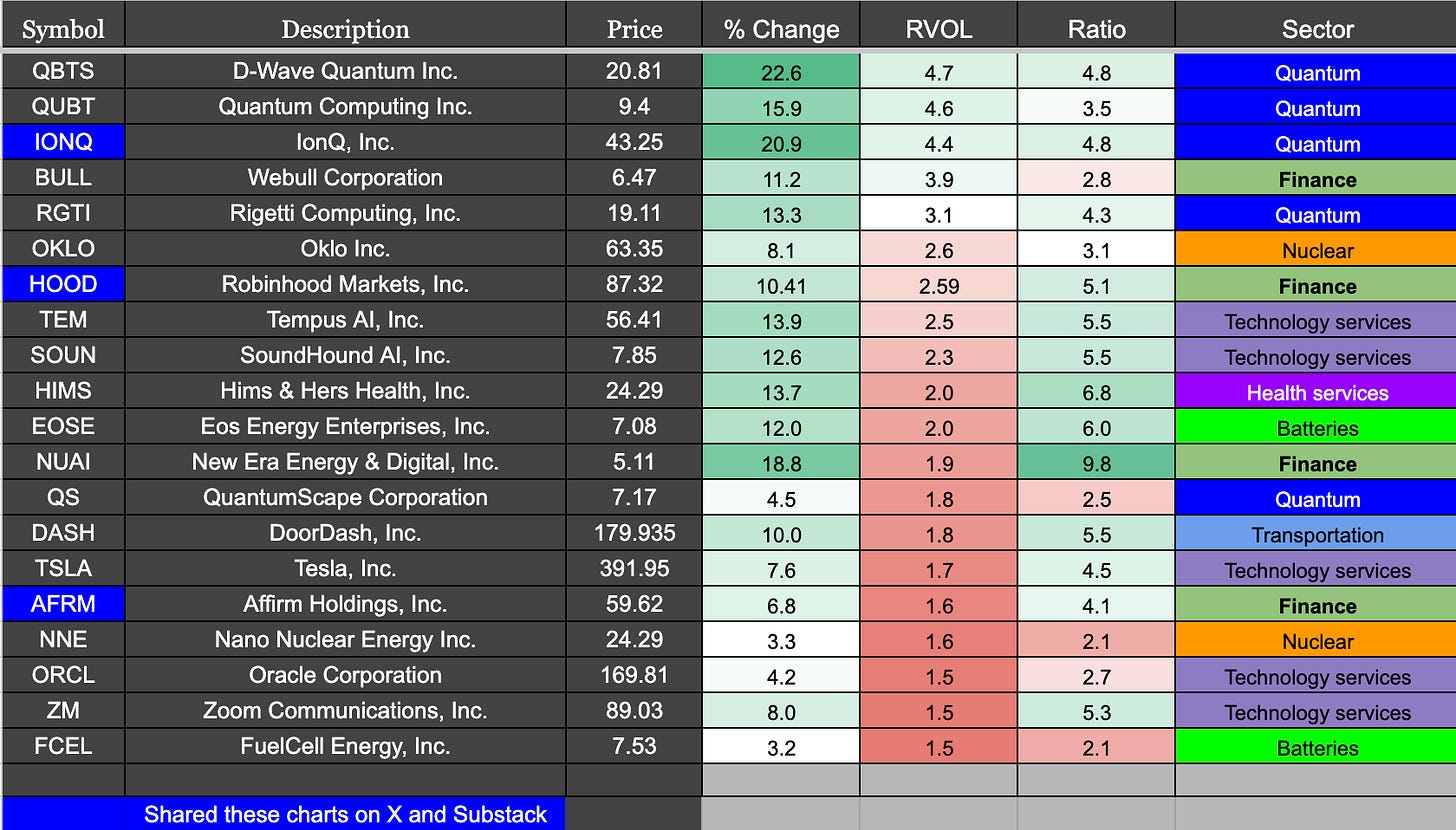 Relative Volume From Today (Quantum has been hot for 2 days)