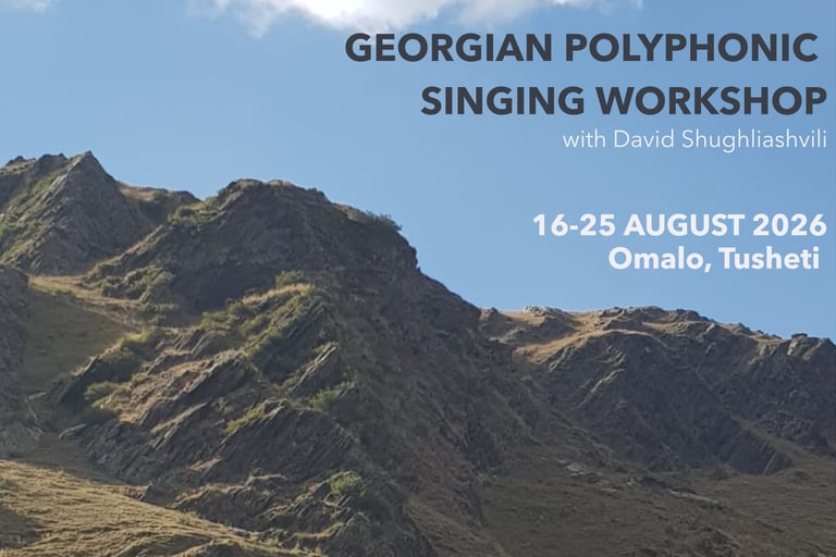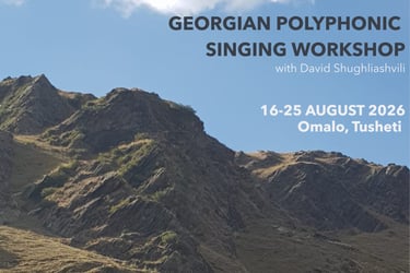 Set within the remote landscape of the Caucasus mountains, the workshop offers an immersive environment for engaging with traditional Georgian vocal practice, learning songs from different regions, and understanding their cultural and historical context.