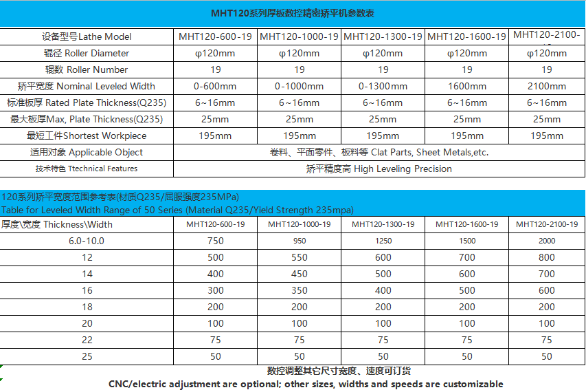 MHT120-1300工业铝板专用矫平机|整形机适用4-20mm厚金属可定做不同宽度(400-2300mm宽),钢板,不锈钢,铜板,铝板,网孔板等材料,可根据客户不同材料要求定制生产。金属材料在较大弹塑性弯曲条件下,不管其原始弯曲程度有多大区别,数控精密矫平机利用材料的“包辛格效应”对板材进行多次反复弯曲,逐渐减小压弯挠度,使多种原始曲率逐步变为单一曲率,并将其矫平,达到工艺要求的平整精度。
