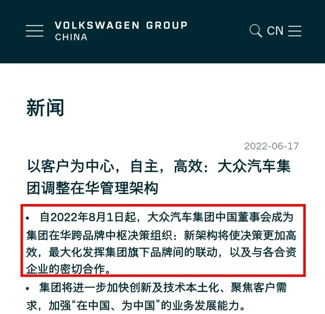 其实,德国政府和很多大企业心里也很清楚自己的问题,德国大众在2022年发布了一条重磅人事调整,大众中国董事会拥有独立决策权。