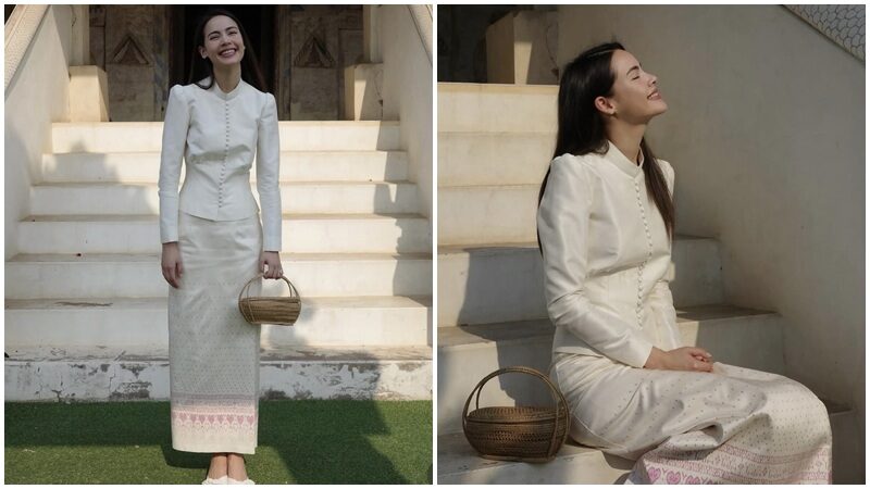 โดยว่าที่เจ้าสาว ญาญ่า มาในชุดไทยสีขาวงาช้าง โทนสุภาพอ่อนหวาน เสริมด้วยผ้านุ่งลวดลายละเอียดสีชมพูกลีบบัว ดูสง่างามเรียบร้อย ด้านว่าที่เจ้าบ่าว ณเดชน์ มาในชุดเรียบง่ายแต่แฝงความเท่ ด้วยเสื้อเชิ้ตสีขาว กางเกงขายาว และผ้าขาวม้าผูกเอว สะท้อนกลิ่นอายความเป็นไทยร่วมสมัยได้อย่างลงตัว