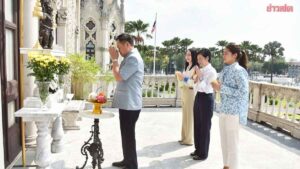 นายกฯ นำทีมโฆษกรัฐบาล สักการะองค์นรสิงห์ เสริมสิริมงคล พร้อมให้รดน้ำขอพร