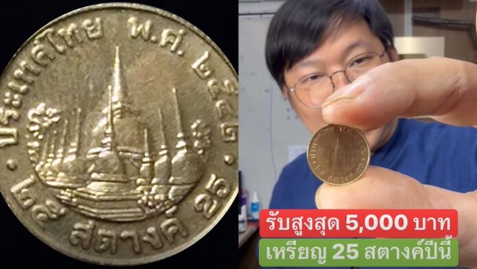 A small coin with big value is making waves online after a local shop offered up to 5,000 baht for a rare 25-satang coin — about 2 million per cent above its face value.