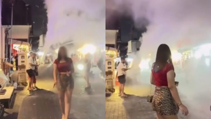 Two foreign men caused chaos on Walking Street Pattaya after discharging a dry chemical fire extinguisher into crowds and surrounding areas, prompting tourists to run for safety. The incident, which circulated widely on social media, was reported at 05:16 on 12 April, with witnesses saying it occurred around 04:00 after entertainment venues had closed.