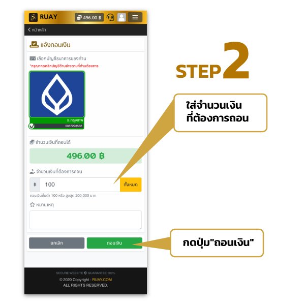 วิธีถอนเงินกับ RUAY
