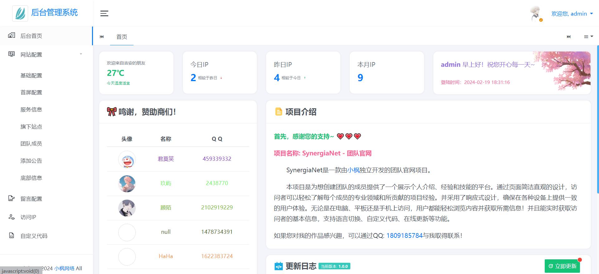 本项目是为想创建团队的成员提供了一个展示个人介绍、经验和技能的平台。通过页面简洁直观的设计,访问者可以轻松了解每个成员的专业领域和所贡献的项目经验。并采用了响应式设计,确保在各种设备上提供一致的用户体验。无论是在电脑、平板还是手机上访问,用户都能轻松浏览内容并获取所需信息!并且能实时获取访问者的基本信息,支持语言切换、自定义代码、在线更新等功能。