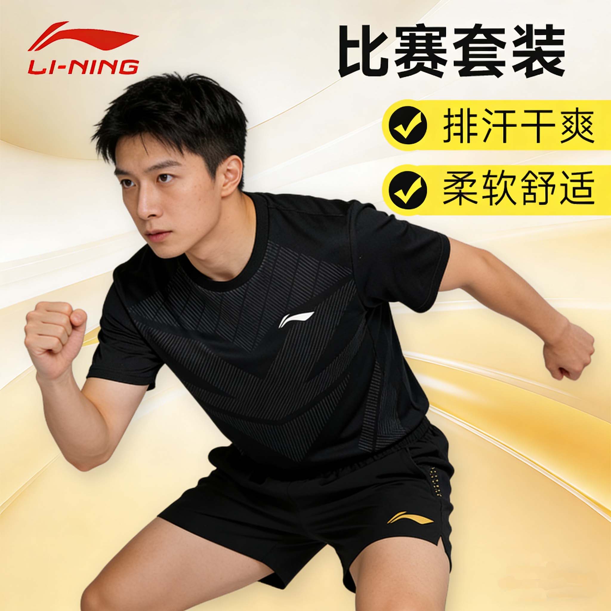 乒乓运动套装服 李宁乒乓球短袖 速干运动T恤ATST033-1黑色 专业比赛运动短裤AAPV059-1 黑色 排汗速干,柔软舒适,速干凉爽比赛套装