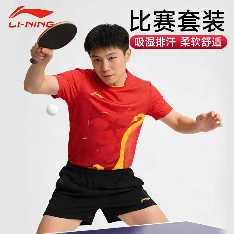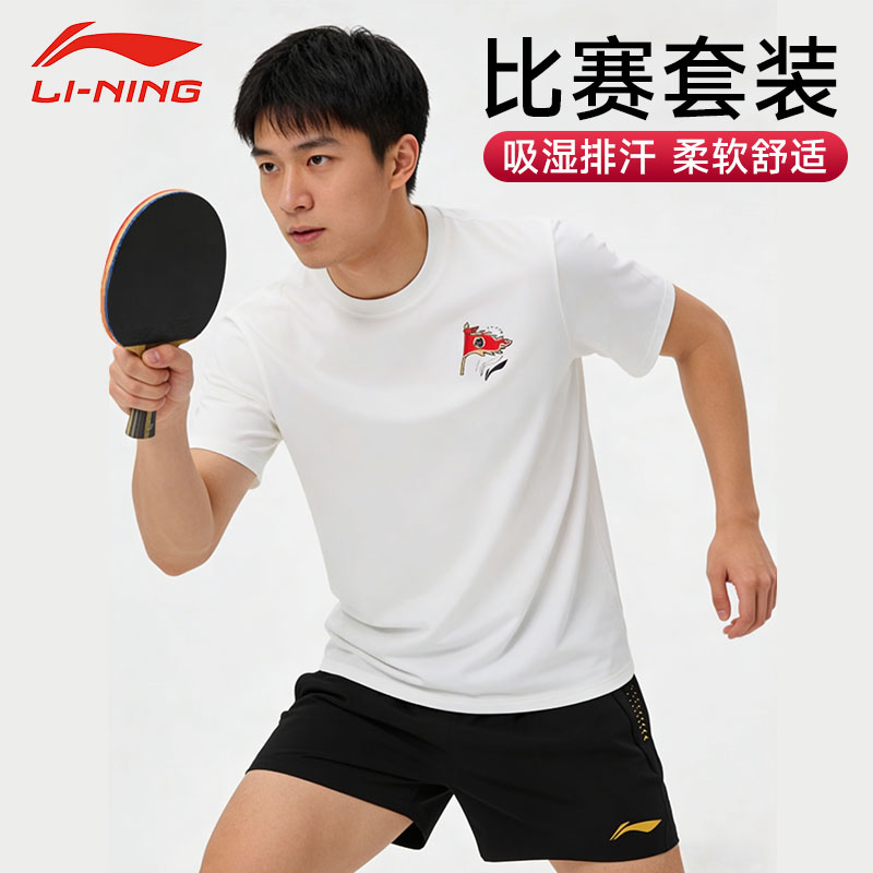 乒乓运动套装服 李宁乒乓球短袖 速干运动T恤AAYS253-1赤樱红 专业比赛运动短裤AAPV059-1 黑色 速干凉爽,柔软舒适,乒乓运动套装
