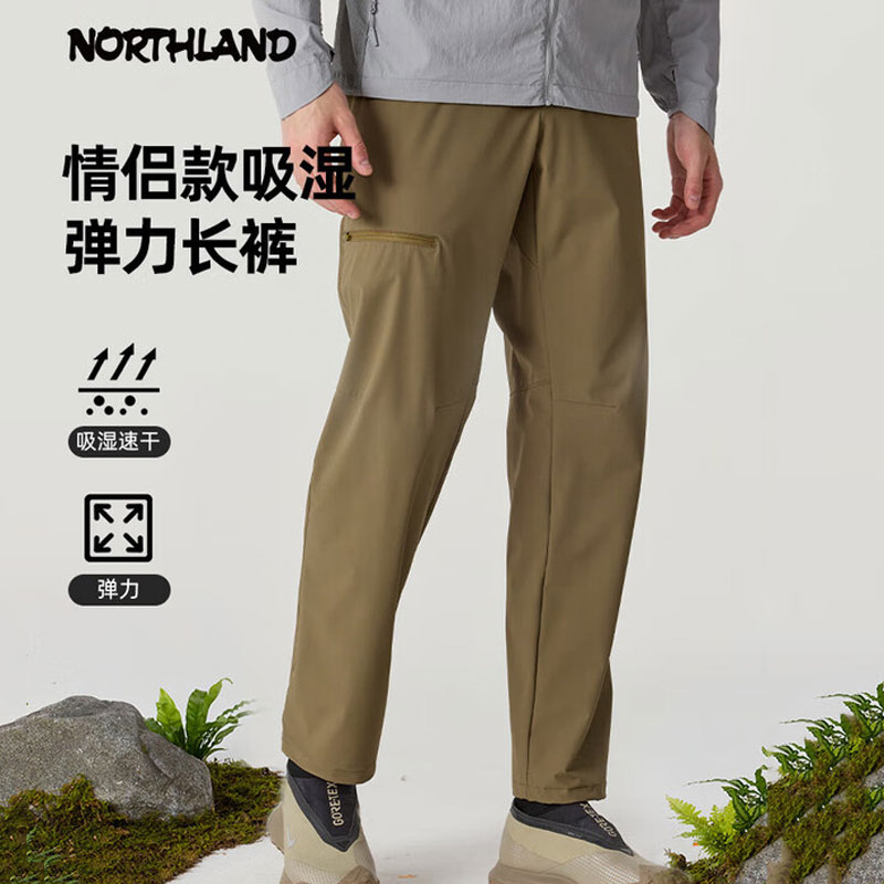 NORTHLAND诺诗兰 户外25春季新款女款速干长裤 运动吸湿快干弹力徒步登山长裤 燕麦咖色 NQPFH2254E