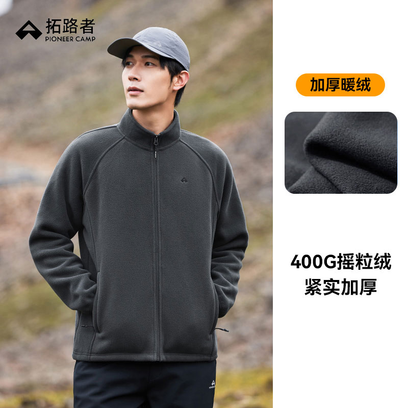 拓路者 男款抓绒衣 摇粒绒外套男款秋季抓绒衣双面绒加厚百搭立领内胆保暖开衫 XRY023073 碳灰