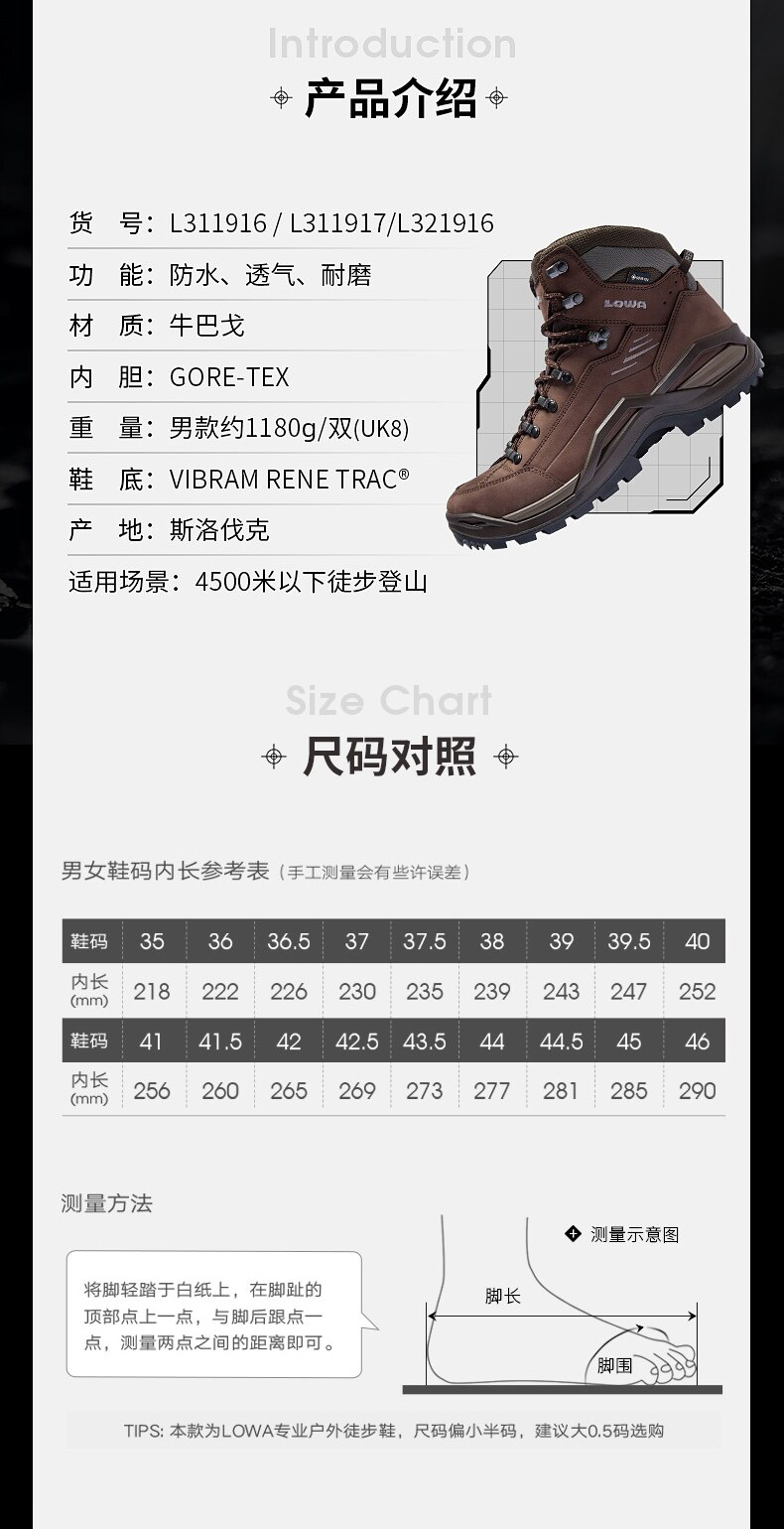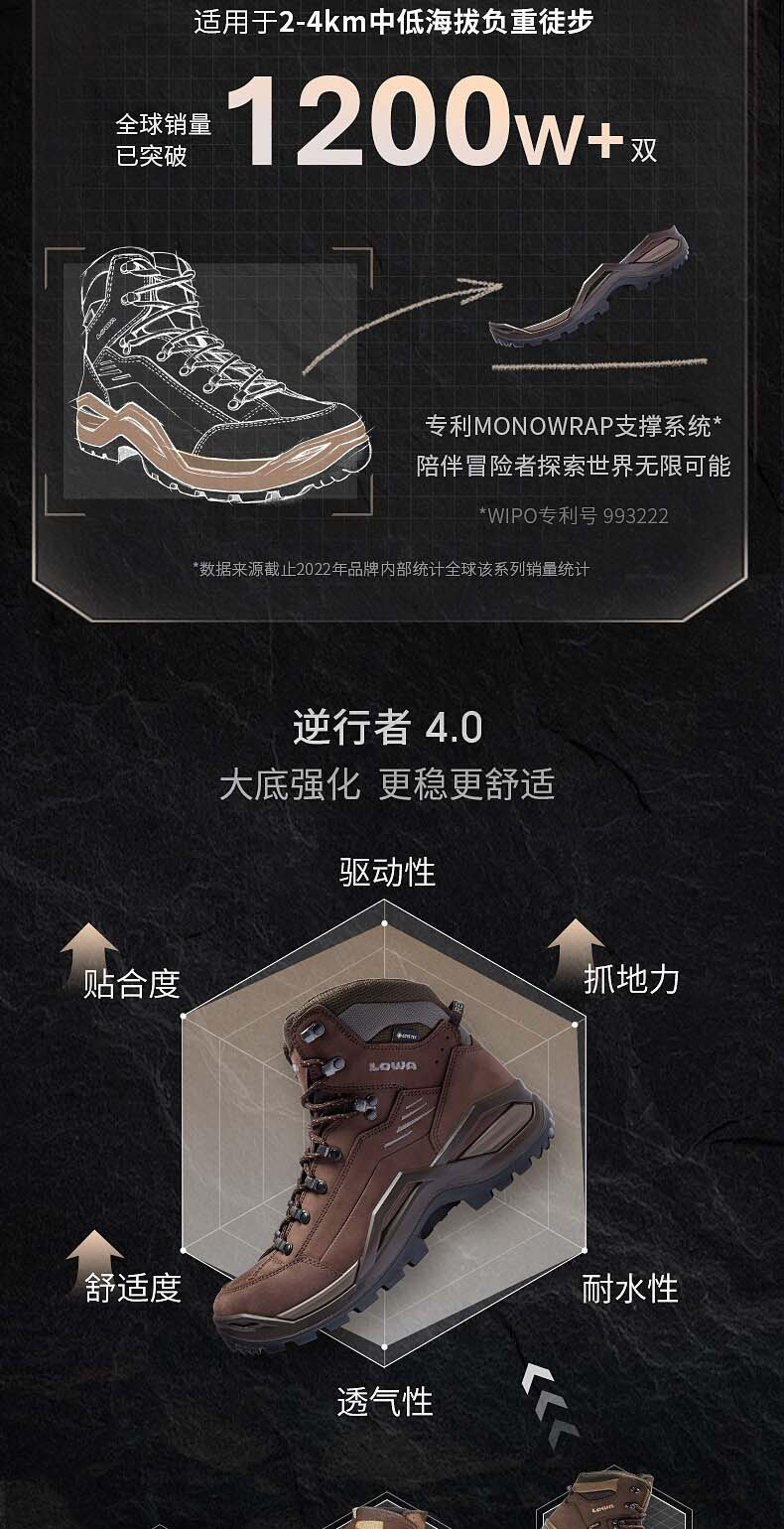 德国百年户外品牌 LOWA 经典爆款,中帮护踝专业设计