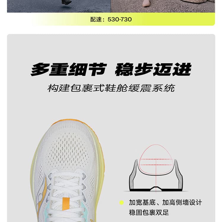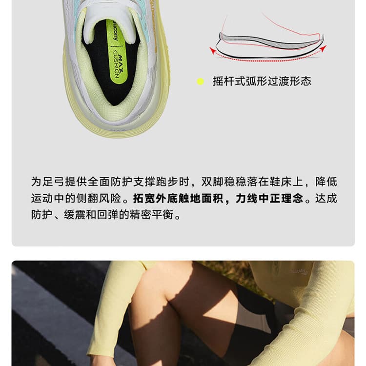 搭载中央力线稳定平台理念,确保从脚跟到脚趾的平稳过渡,提升跑姿流畅度。
