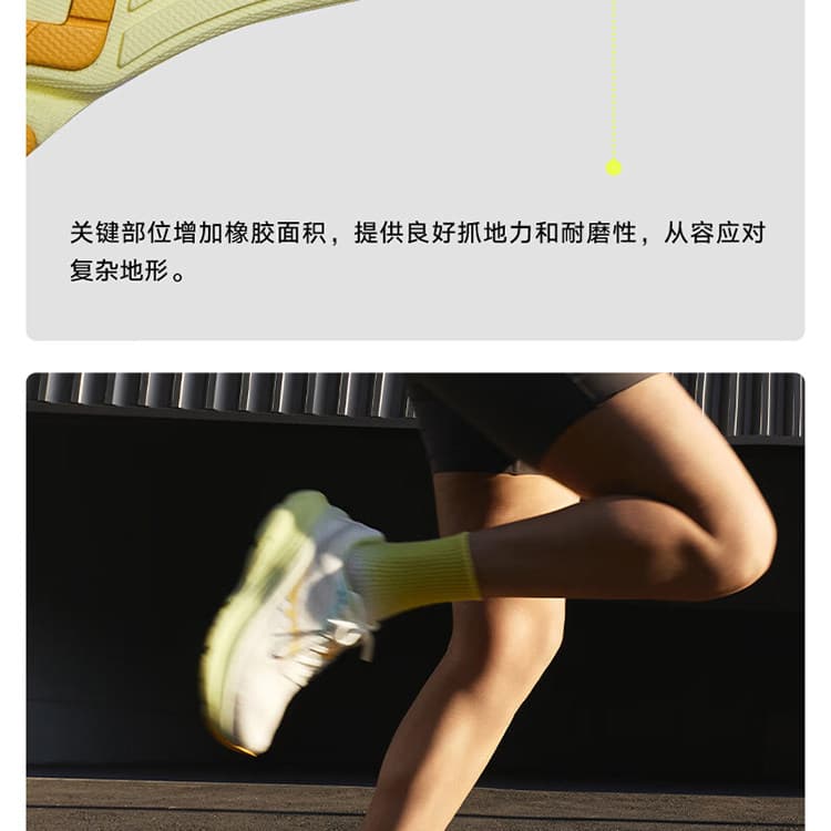 外底使用XT-900耐磨橡胶,覆盖面积增加,显著提升使用寿命,适应多种地形挑战。尽管湿地防滑性未见突出优化,但在常规路面表现可靠。